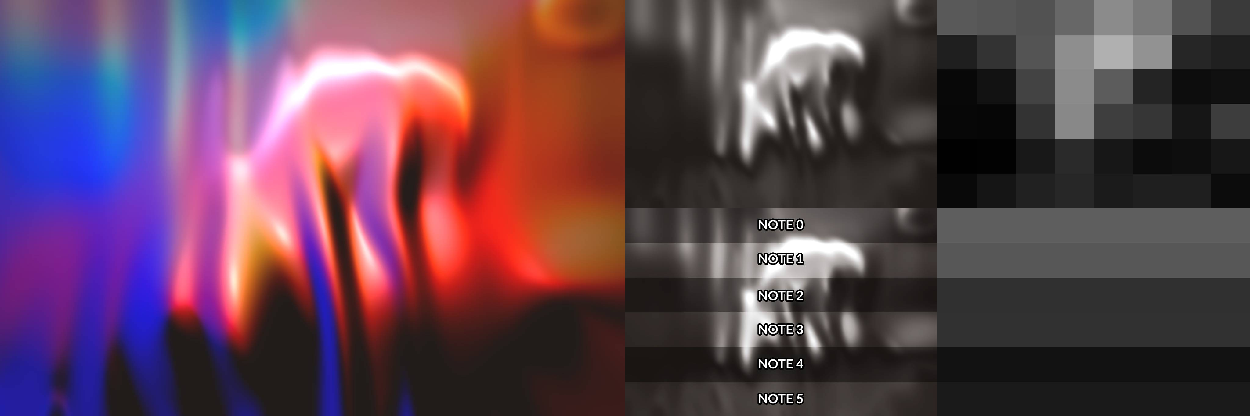I ended up using the Tone.js library to construct a synthesis engine and post-processing stack that would allow me to generate a constant tone. To this I added some code that would look at the image being rendered for it’s overall brightness, horizontal luminance averages, etc. and mapped these evaluations to waveform partials, note volumes, and high-pass filter frequency cutoffs. In this way, the visuals would directly map to the audio being generated.